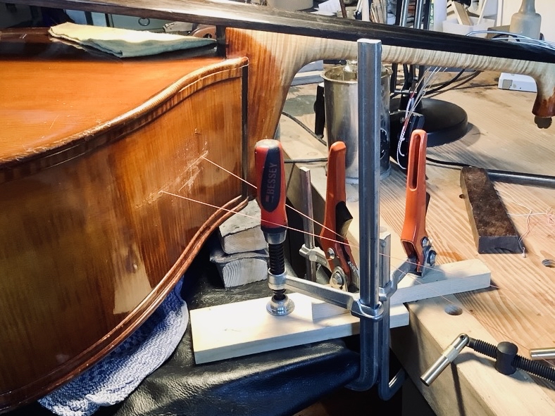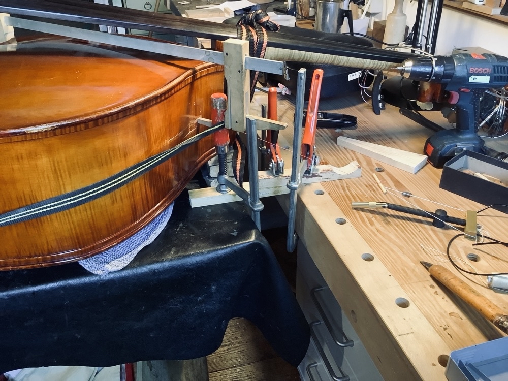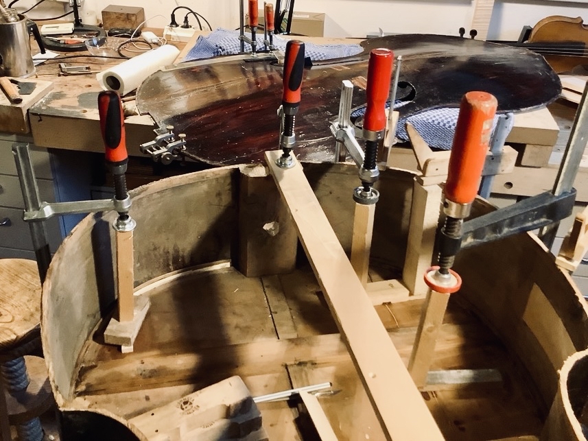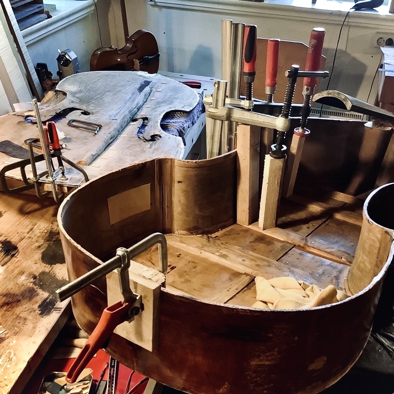 Reparaturen an Kontrabässen